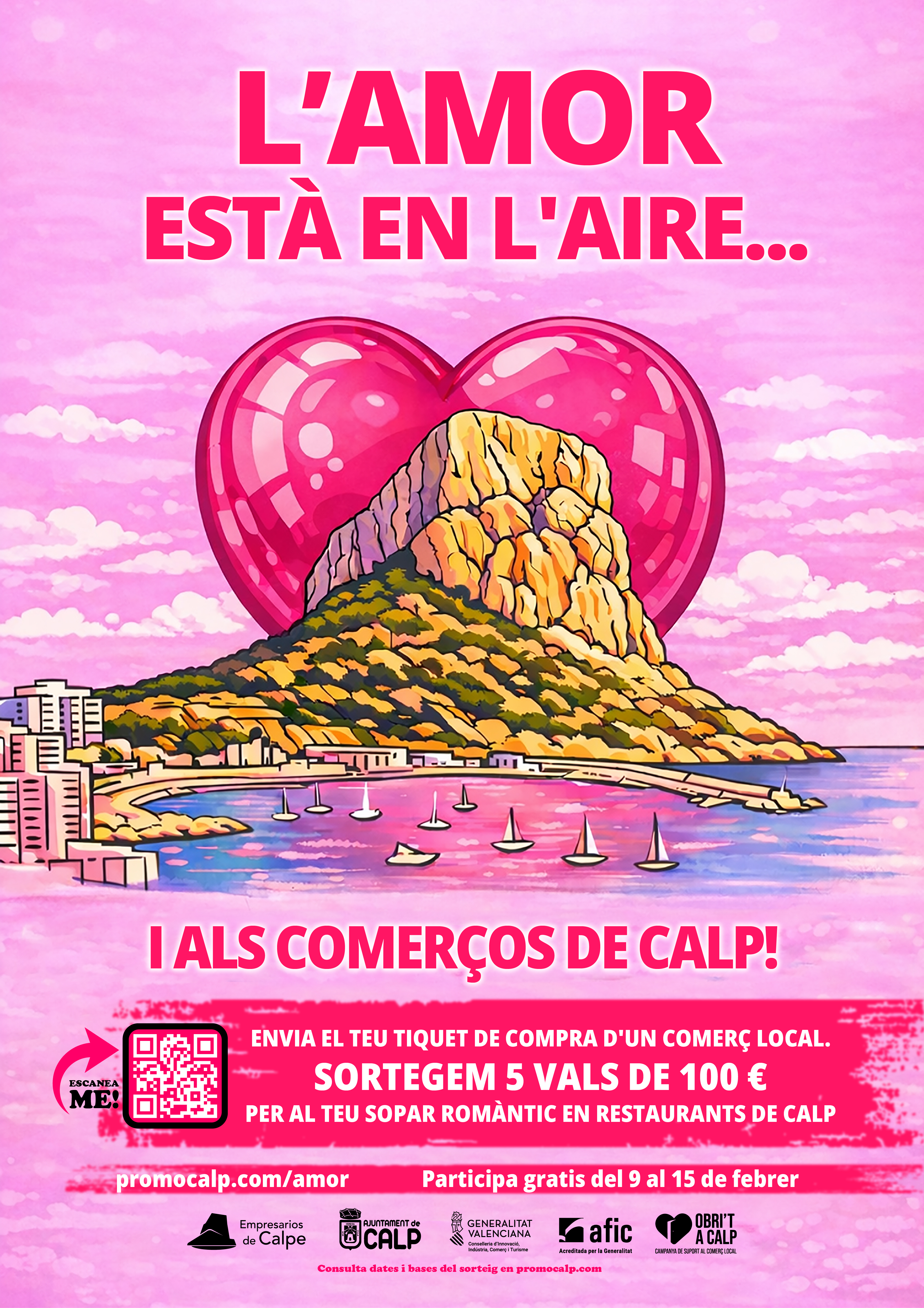 Las bases completas de la campaña “El amor está en el aire… ¡y en los comercios de Calp!” están disponibles en esa misma página web.
